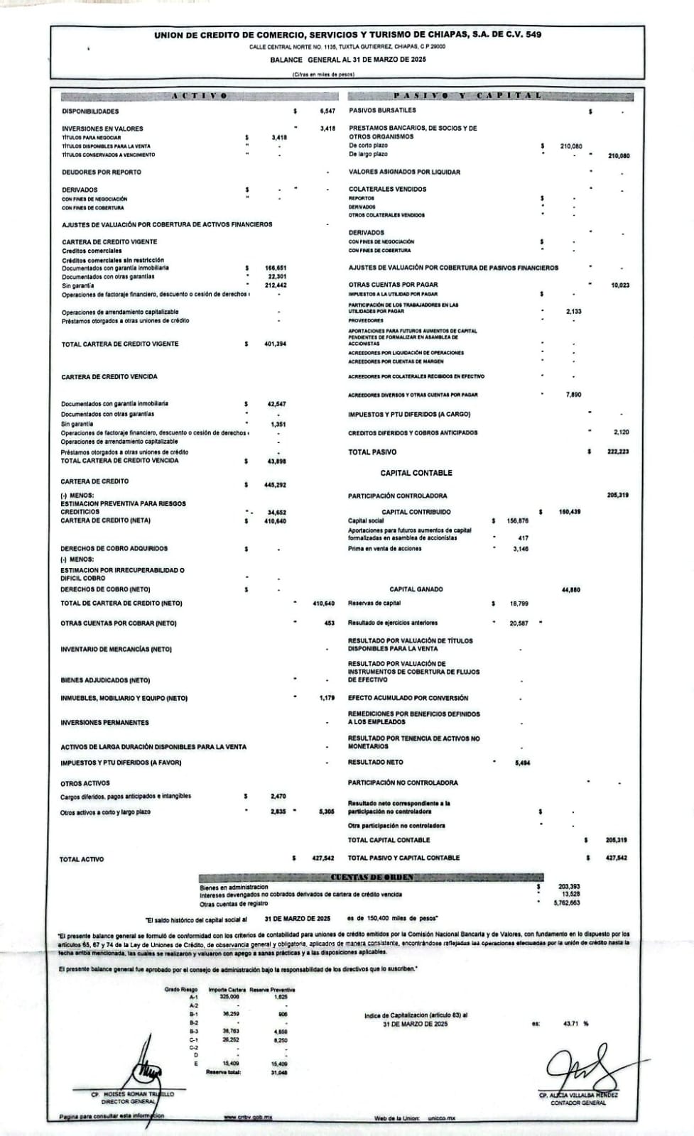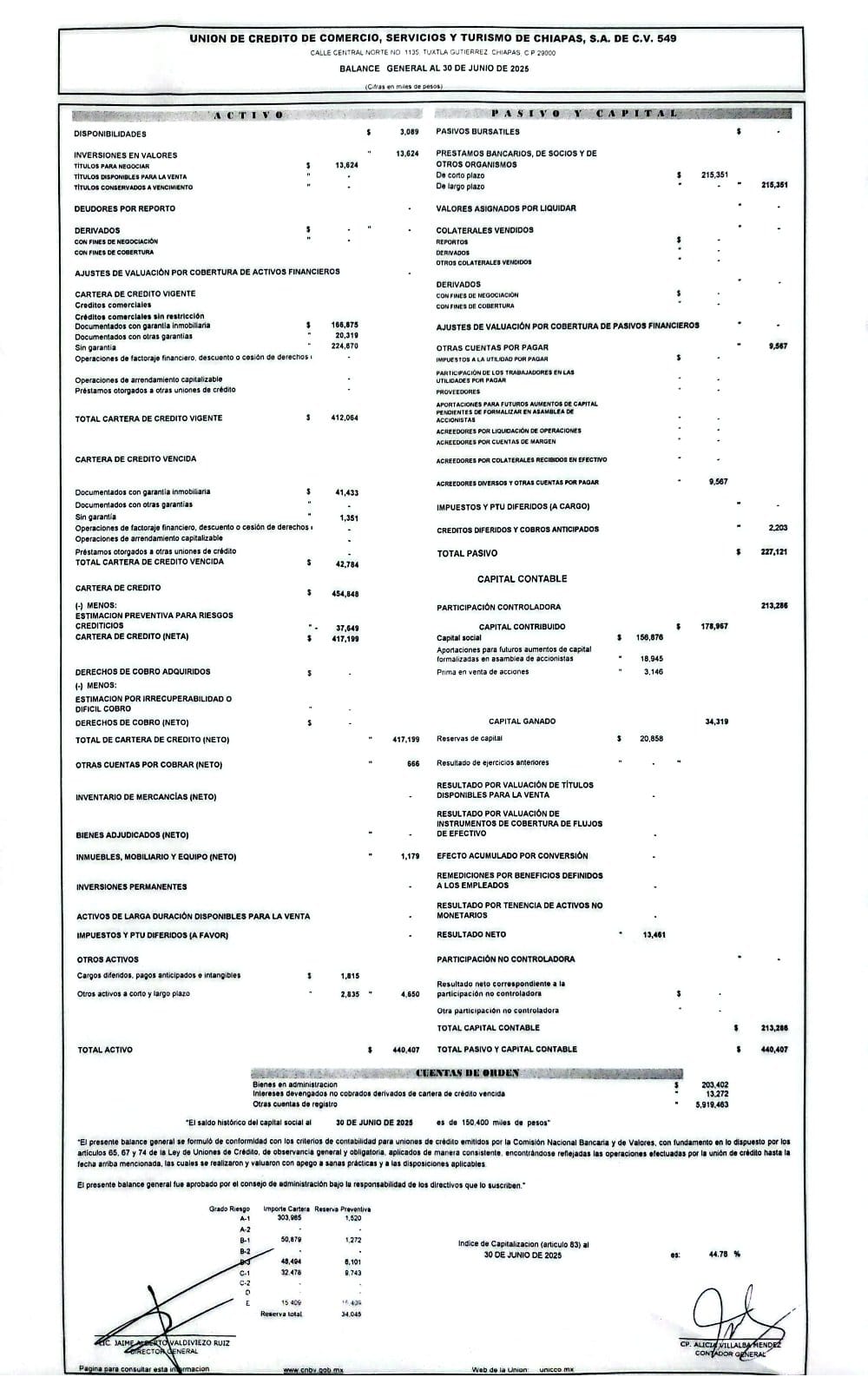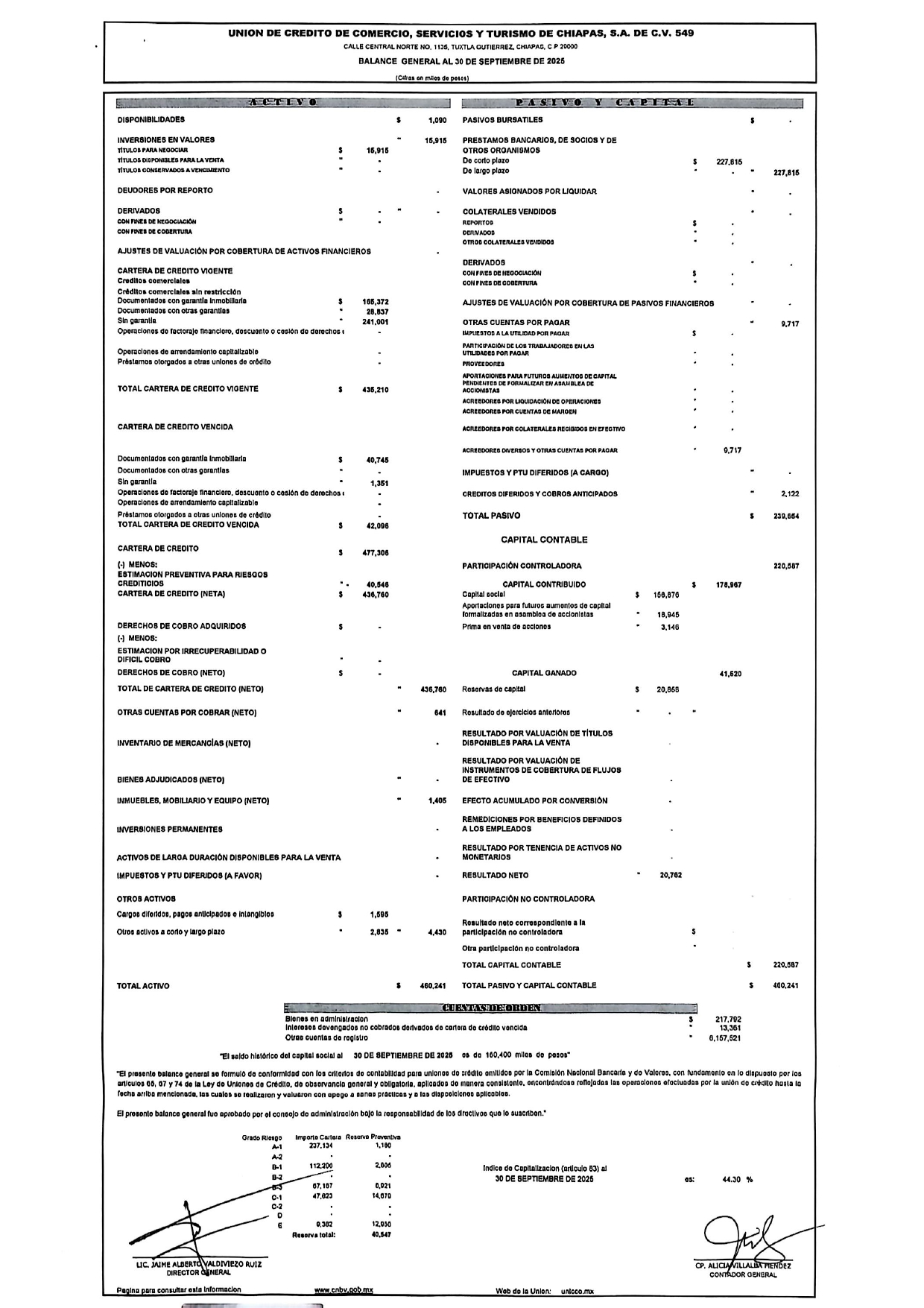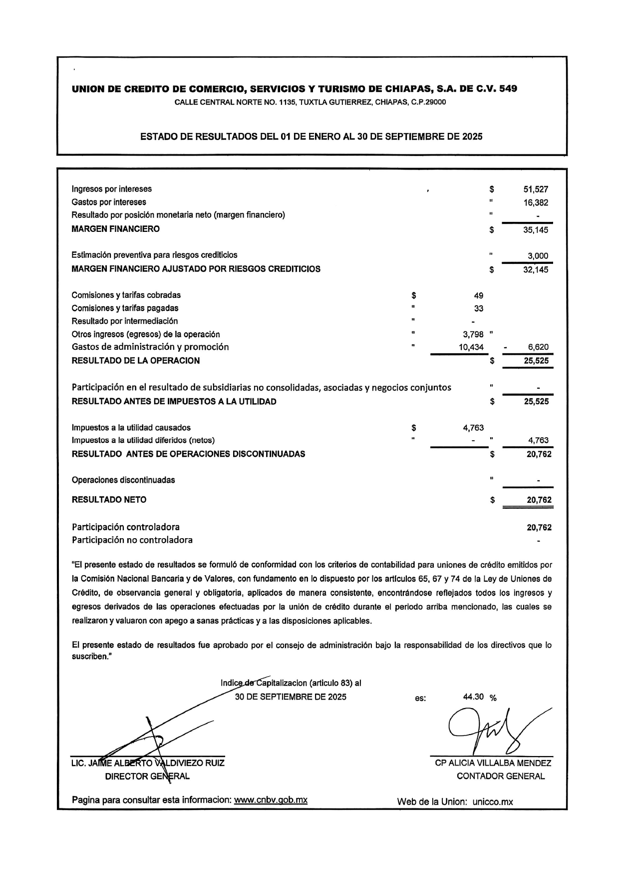ESTADOS DE RESULTADOS CORRESPONDIENTES DEL 01 DE ENERO AL 30 DE SEPTIEMBRE DEL 2025 Consultar los estados financieros en la pagina www.CNBV.gob.mx