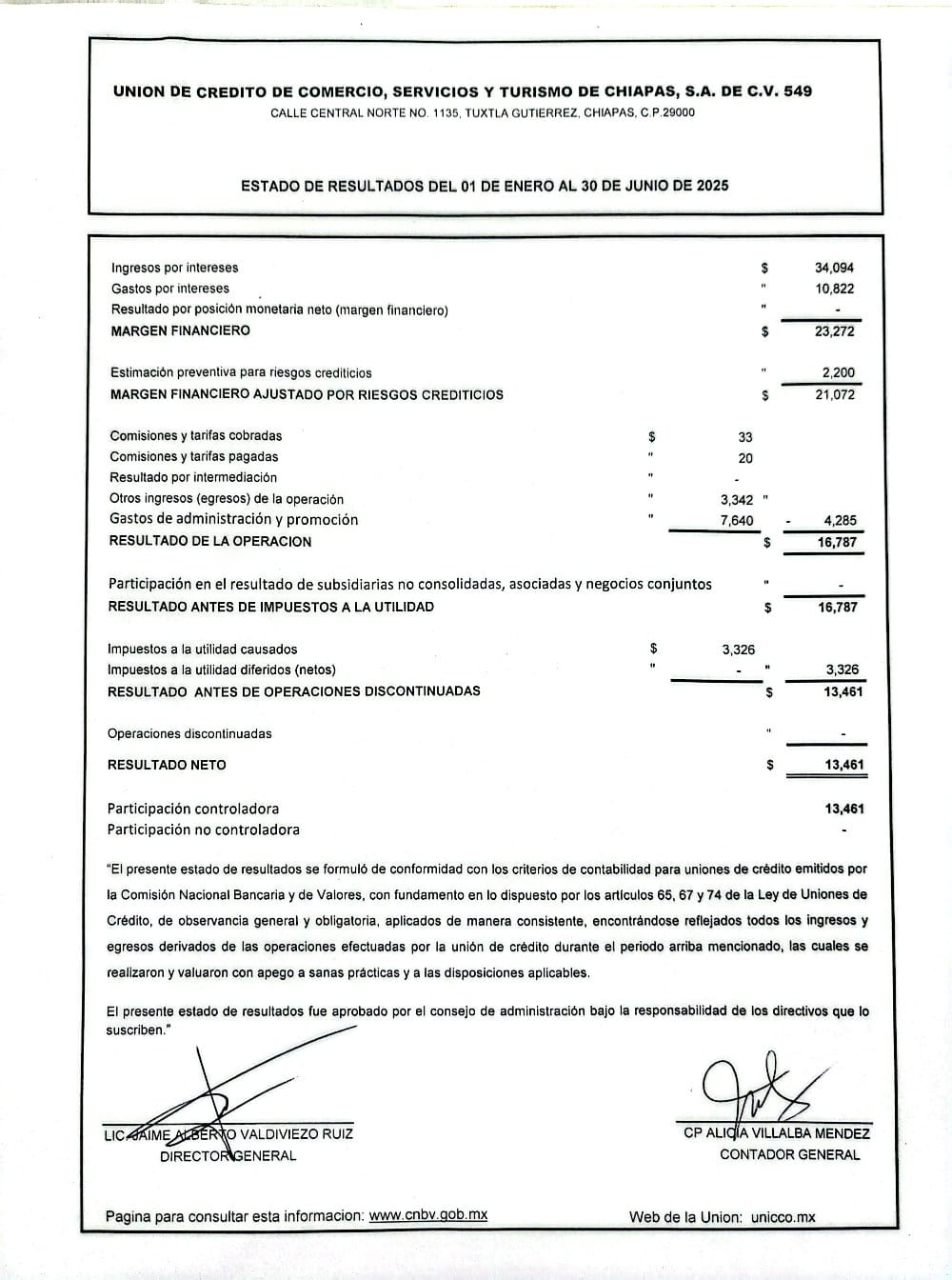 ESTADOS DE RESULTADOS CORRESPONDIENTES DEL 01 DE ENERO AL 30 DE JUNIO DEL 2025 Consultar los estados financieros en la pagina www.CNBV.gob.mx